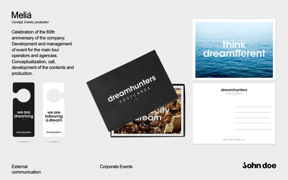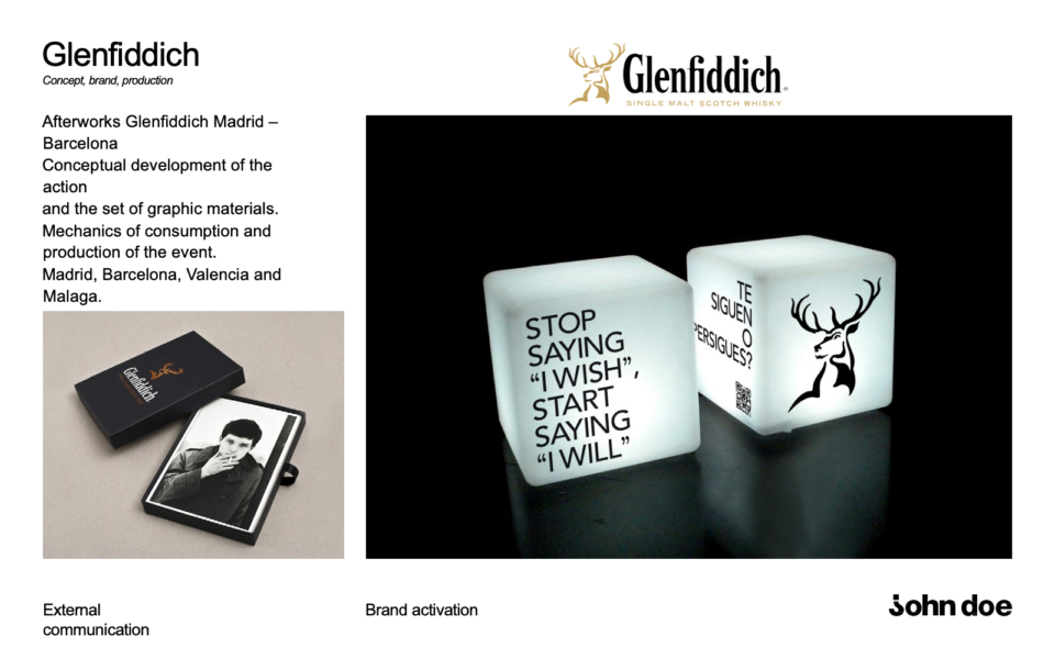 Johndoe is the fictitious name used to refer to those whose identity is unknown. Beyond a name, we are everything that defines us and with which we identify. Identity is the set of things that make us unique and different. We believe that our identity is irrelevant because what is truly important is our work: to build and communicate that of our customers.
